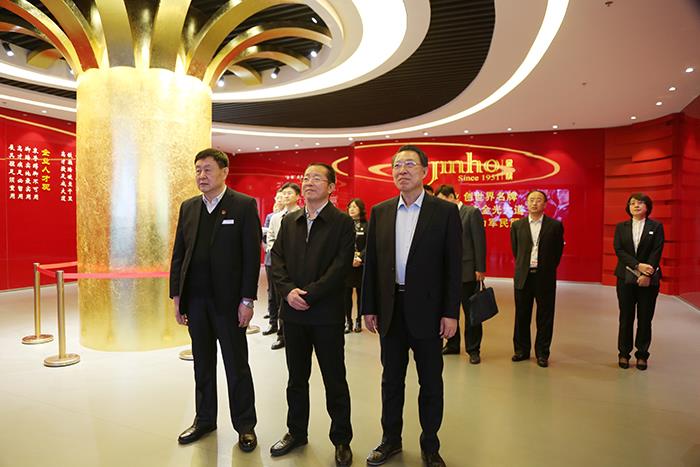 傅書記實地參觀了金猴集團展陳館,詳細了解公司生產經營、轉型升級、軍民融合及展陳館建設情況,對公司的技術研發、品牌建設、軍民融合工作及金猴皮鞋、皮具的優異品質給予了充分肯定和高度贊揚。