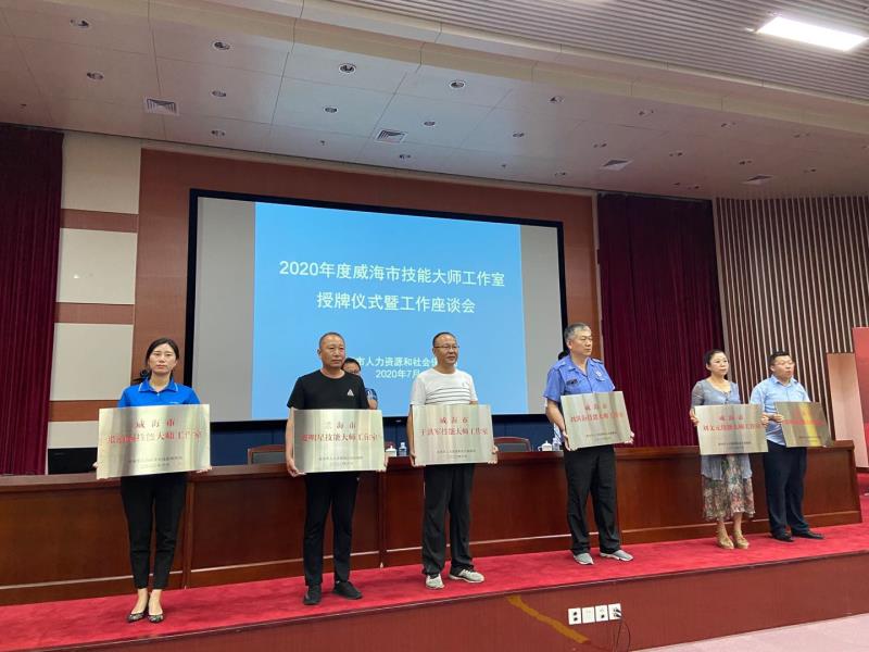 7月31日,2020年度威海市技能大師工作室授牌儀式暨工作室建設工作座談會在威海市人力資源和社會保障局召開,金猴鞋業有限公司張麗麗工作室由威海市示范技師工作站獲準變更為威海市技能大師工作室,工作室領辦人張麗麗上臺接受牌匾并做經驗交流發言。
