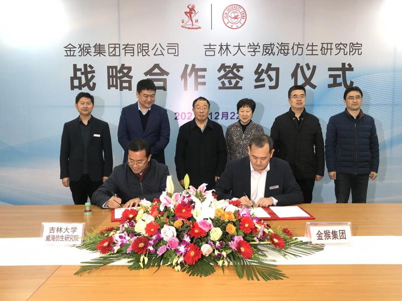 12月23日,金猴集團有限公司與吉林大學威海仿生研究院簽署戰略合作協議,雙方將基于各自所擁有的產業優勢以及教學、科研、人才等方面優勢開展深度合作,攜手引領科技健康時尚新潮流。